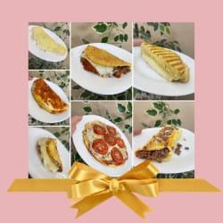Recheios: 3 queijos, Pizza, Frango com catupiry e Carne à parmegiana.